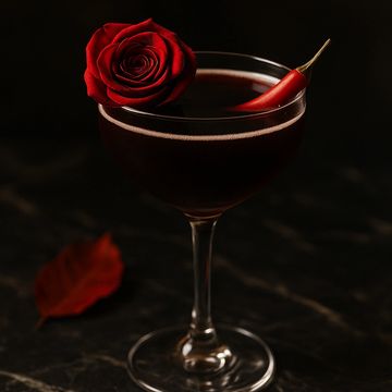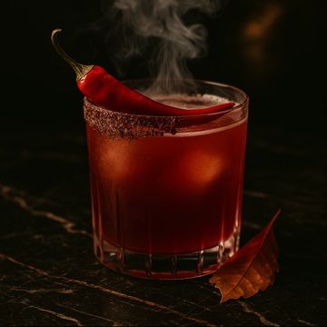 Smoky and seductive. Ruby mezcal fire with a kiss of chili heat — a cocktail that burns slow, bold, and unforgettable.